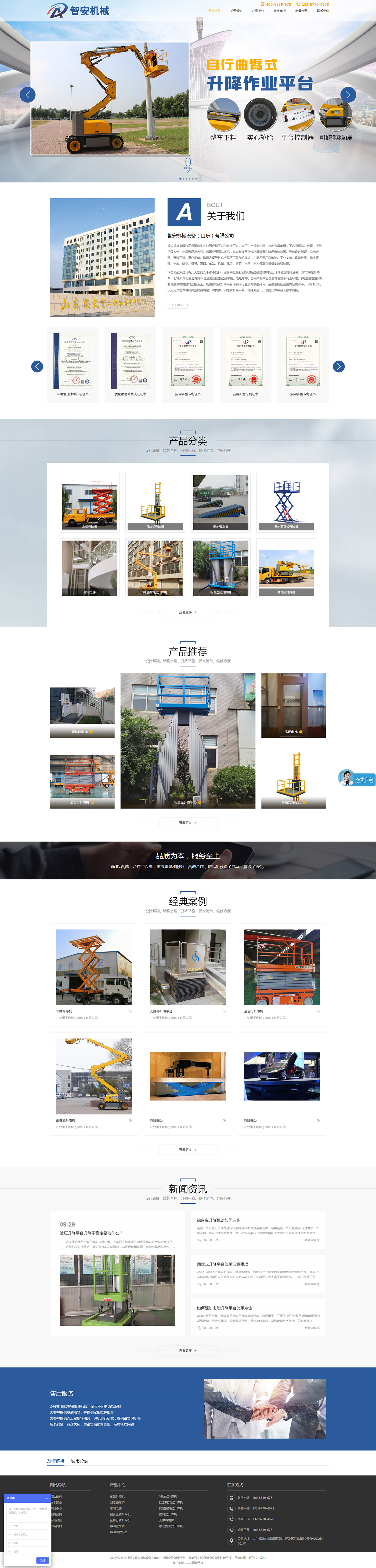 智安機械有限公司是國內生產液壓升降平臺的專業廠家。本廠生產設備先進,技術力量雄厚,工藝流程先進合理,檢測手段齊全。產品選用意大利、德國液壓泵站系統,意大利液壓系統防爆裝置和液壓自鎖裝置。具有設計新穎、結構合理、升降平穩、操作簡單、維修方便等其它產品不可替代的優點。廣泛用于廠房維護、工業安裝、設備檢修、物業管理、倉庫、航空、機場、港口、車站、機械、化工、醫藥、電子、電力等高空設備安裝和檢修。